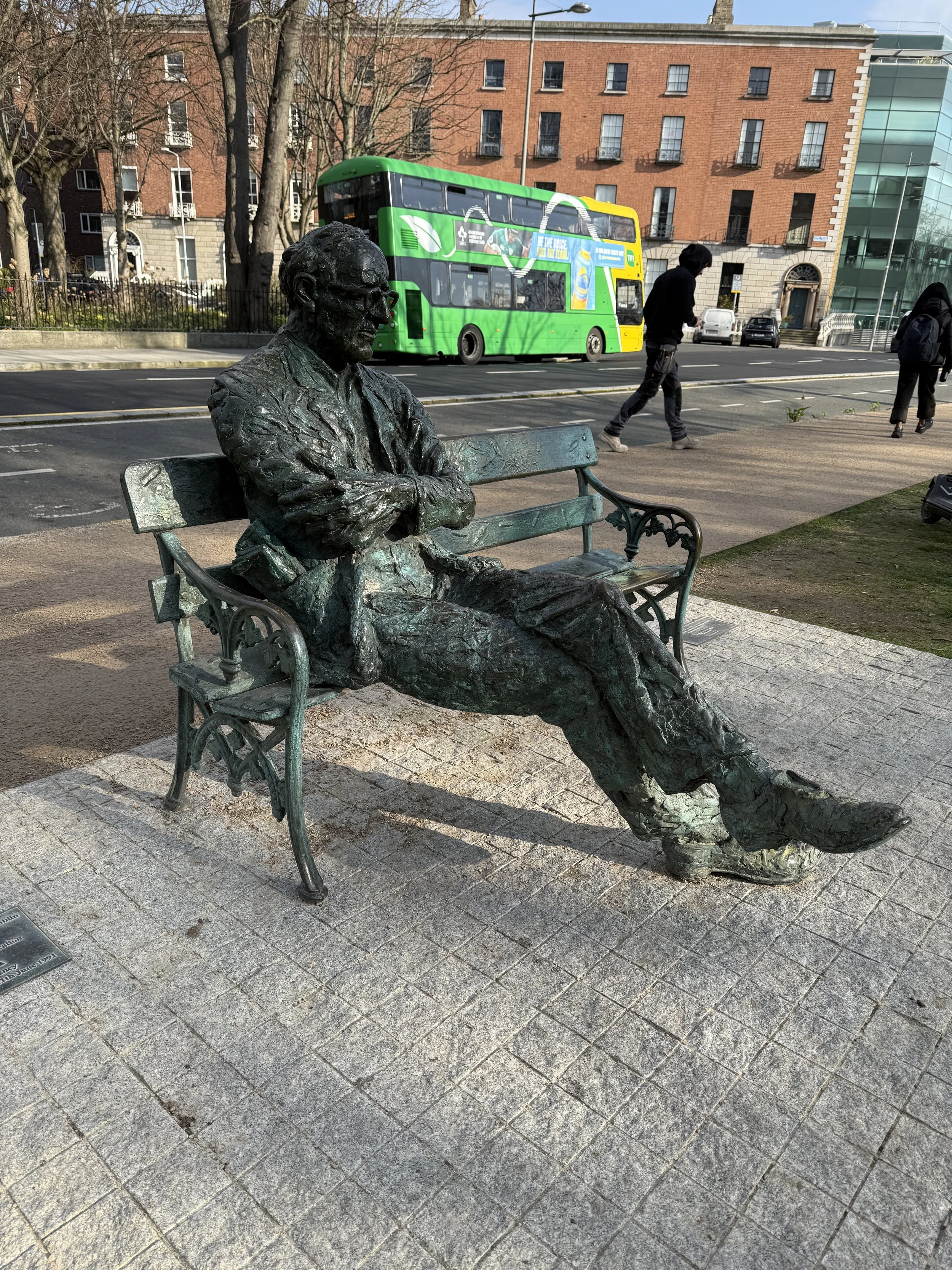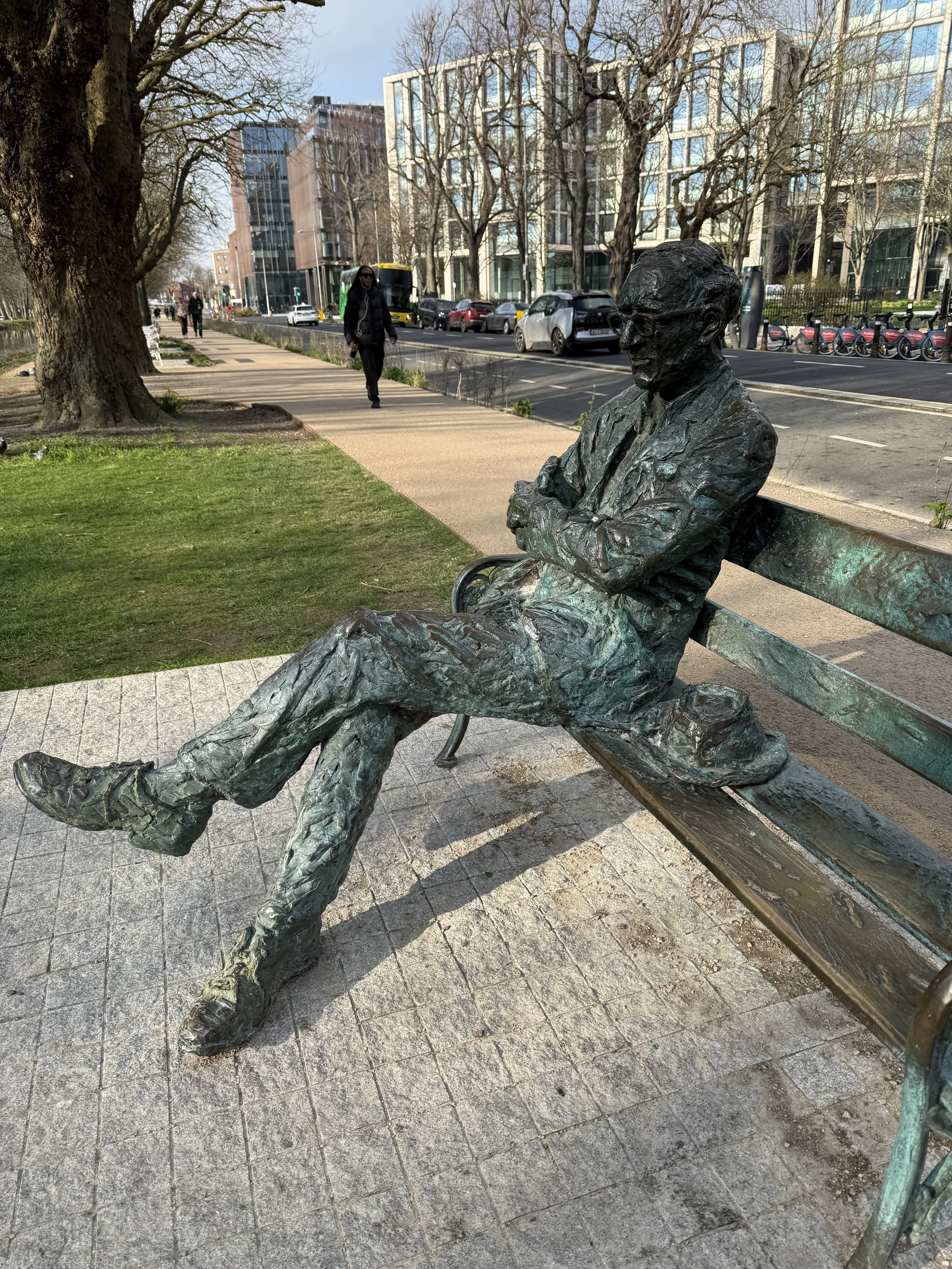 On the north bank of the Grand Canal at Wilton Terrace, between Baggot Street Bridge and Leeson Street Bridge, a bronze figure sits sprawled on a bench, arms folded, legs stretched out, head tilted slightly, watching the water. He looks like a man who has nowhere better to be, and knows it. This is Patrick Kavanagh, one of the greatest Irish poets of the twentieth century, and the bench is exactly where he asked to be remembered.